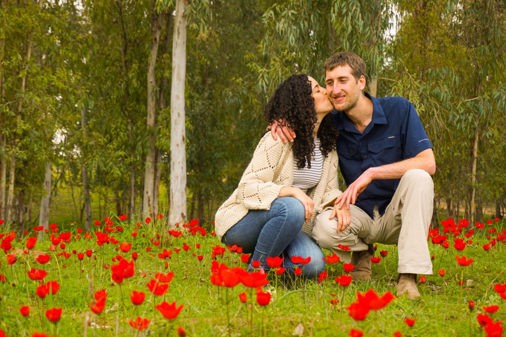 Dan (my brother) and Talia are an amazing couple. We captured these photos on March 2022 before their wedding. I was extremely excited when they offered me to make photoshoots for them. March is a beautiful timing when all these Anemones (Calanit) are covering the West Negev in Israel.