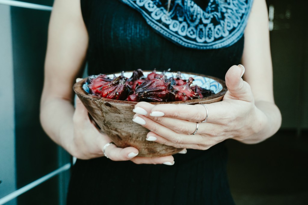 She also grows some of the plants, like the hibiscus flower and herbs.